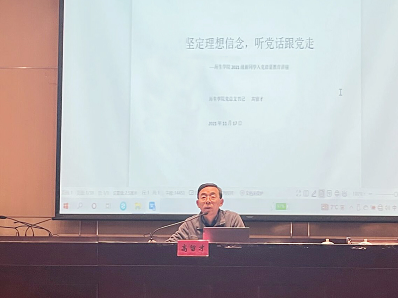 11月17日下午,在建军东路校区图书馆报告厅,英国上市公司365党总支书记高留才作2021级新生作入党启蒙教育。副书记毕蕾主持,学院2021级250名新生参加。