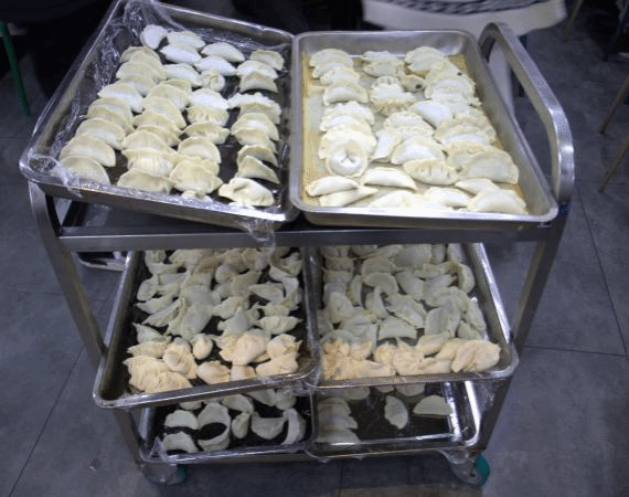 老师们看着同学们的饺子也忍不住加入包饺子大军,亲自教员工们如何包饺子。大家围桌而坐,展示着自己创意性的作品,比拼着包饺子的手法,瞬间,食堂充满了欢声笑语,大家其乐融融,饺子也一盘接一盘的下锅。