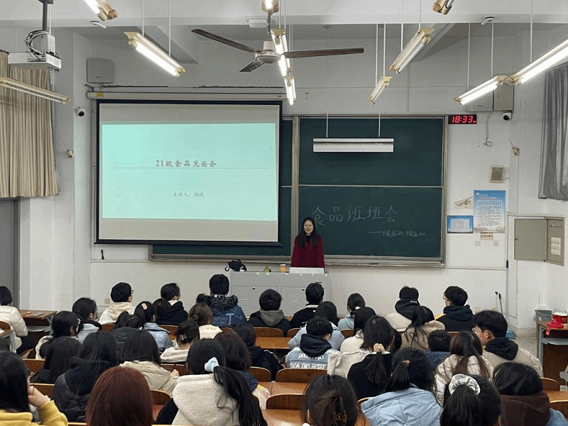 2023年3月2日18时30分,B食品211,212全体员工在知达楼206教室集中,参加了以“2021级食品见面会”为主题的班会活动。学院新任兼职辅导员、博士胡悦老师主持。