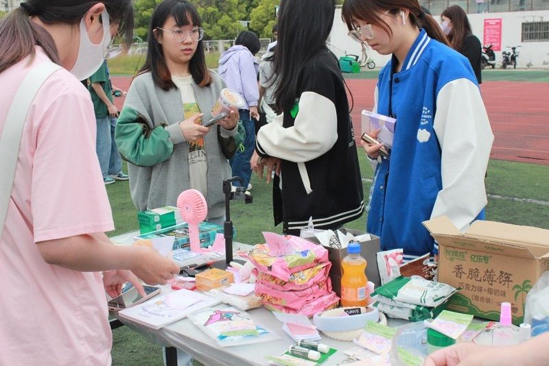 此次跳蚤市场气氛火爆,总共设有二十多个摊位,均为同学们之间二手货交易。在这次跳蚤市场上,同学们将自己用不到的东西转让,各类二手商品应有尽有,新奇独特。夏日来临,有的毕业生将自己不用的凉席、风扇等转让;女生们把自己多余的头饰、护肤品等摆出来;男生们把自己不玩的玩具、盲盒拿到跳蚤市场转让。另外,还有各种书籍转让,大家把自己看过的书拿出来转让,分享知识的同时也在分享快乐。同学们纷纷利用这次跳蚤市场挑选自己心仪的物件,为毕业生处理自己的东西提供了便利,也为学弟学妹们提供了实惠。
