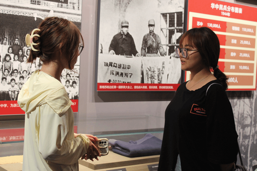 在参观结束后,B食品231的姚婧妤同学表示:“在纪念馆里,见证了新四军的诞生、见证了韦岗战役的影响、见证了盐城会师的震撼。一处处展区,一次次地让我感到了深深的震撼。看到当时在战争中保存下来的信,我们会近距离观看里面到底写的内容。”