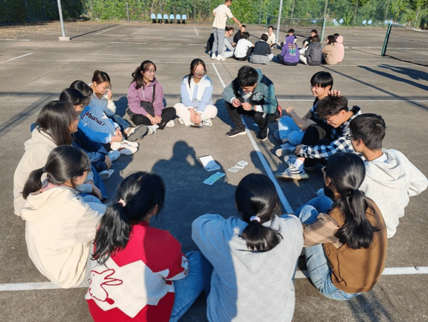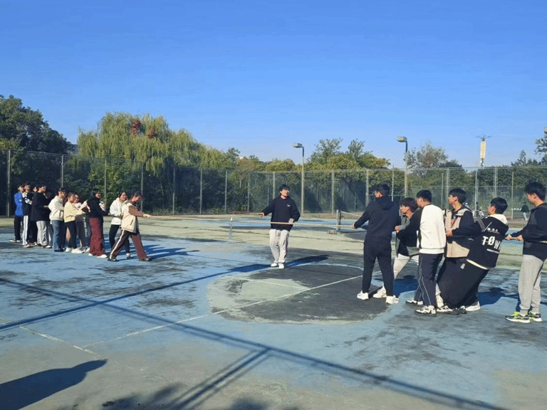 本次班级主题团建活动开展了拔河比赛、数字炸弹、狼人杀、你画我猜等小游戏。现场人声鼎沸,同学们你追我赶、围坐成圈进行游戏、还有的肩并肩在阳光下漫步。团建当中也有“惩罚措施”,接受惩罚的同学们讲搞笑段子、倾情演唱喜欢的歌曲或是在人群中翩翩起舞,引得同学们赞叹连连。