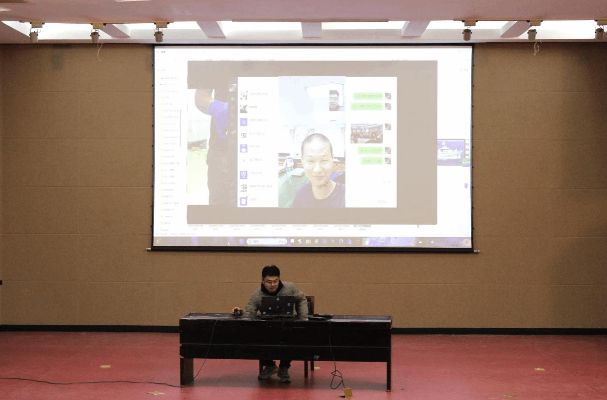 在学长学姐工作成果分享方面,现场视频连线了海洋专业毕业生祁孝荣。祁孝荣是24年海洋科学专业毕业生,毕业后在中国水产科学研究院东海水产研究所远洋调查项目组,目前正在印度洋进行渔业资源调查活动。连线过程中,祁孝荣学长通过手机视频带大家一起参观蓝海201调查船,祁孝荣骄傲的告诉大家,“蓝海201”是中国自主设计、建造,具有全球航行能力(除两极冰区以外)。船体总长84.50米、型宽15米、满载排水量3281.5吨、续航力达10000海里,该船是中国农业农村部迄今投资最多、吨位最大、设施最先进的海洋渔业综合科学调查船,被誉为“渔业航母”。此外,祁孝荣学长还视频带大家走进了他的宿舍,和给大家展示了他收集的鲨鱼鳍,捕获的鲸鱼等,他给学弟学妹们介绍了船上的伙食非常好,每天有金枪鱼刺身,各种美食,吃饱饭还有健身房进行锻炼。他鼓励大家好好学习,毕业后一起逐浪深蓝。