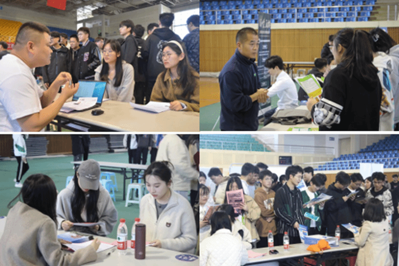 各招聘单位人力资源部负责人向同学们全方面介绍了企业招聘政策、职业发展前景、企业发展目标、岗位薪资待遇等信息;应届毕业生们也带着精心准备的简历,与企业招聘人员进行细致的沟通,详细了解企业基本信息,并结合自己的意向向心仪企业投递简历。体育馆内热烈的氛围还吸引了许多非毕业生来到现场,提前了解本专业的就业前景与发展方向,帮助更好地完成自己的生涯规划。