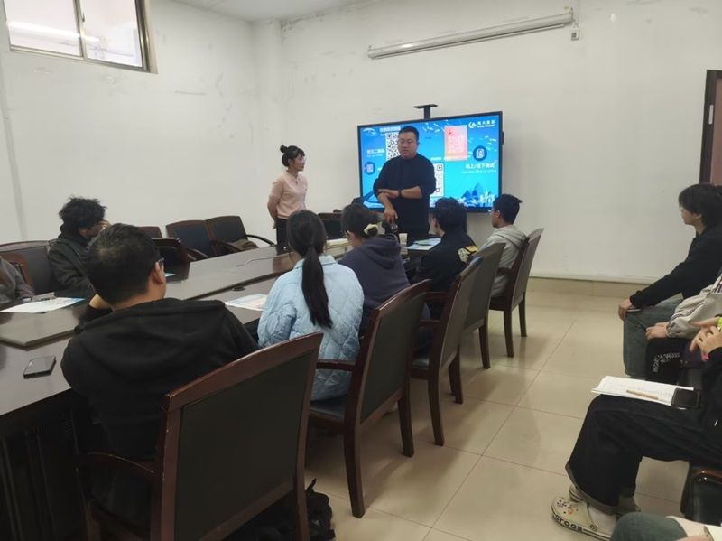 宣讲结束,同学们积极提问公司业务方面知识以及实习工资,福利等问题。王经理以分享自己一天的工作安排的角度为同学们解答,表示工作地点根据自身需求分配,前期主要任务是维护客户,销售岗研究生占比接近百分之二十。最后,有意向的同学与公司招聘人员更进一步交流,多名员工提交简历。