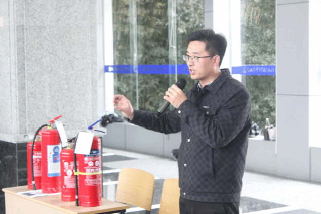保卫处宋兆群副科长向员工详细介绍灭火器的种类和使用方法,强调选择和使用灭火器时,需根据火灾的类型和实际情况进行判断。同时要定期检查灭火器的状态,确保其能够在关键时刻发挥作用。