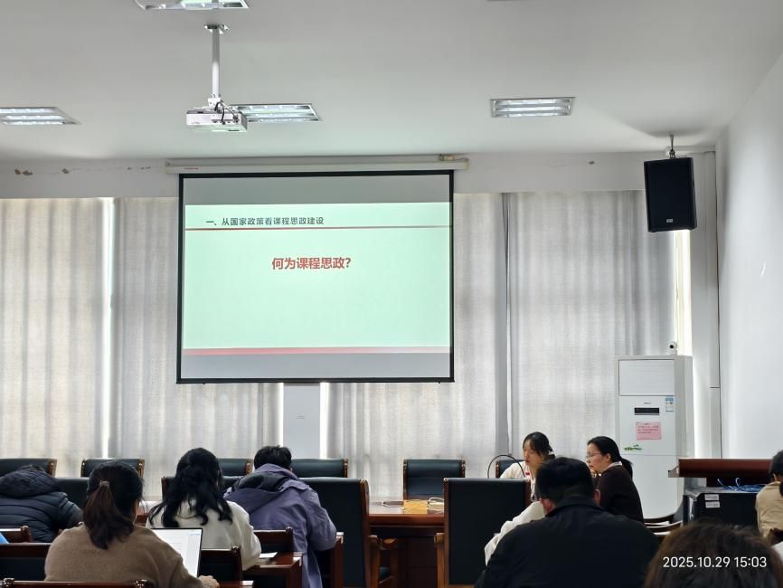 张丽介绍了学院推进课程思政建设,提升教师教书育人能力的总体要求。张瑞芹老师从国家政策、重要意义、建设要素及核心抓手四方面展开讲解,强调课程思政是落实立德树人的关键,需聚焦“价值引领、知识传授、能力培养”目标,以教师为主体,将思政元素融入教学各环节。张瑞芹表示,课程思政建设是一项系统工程,需要包括思政课程教师、公共课教师及专业课教师在内共同协作完成。