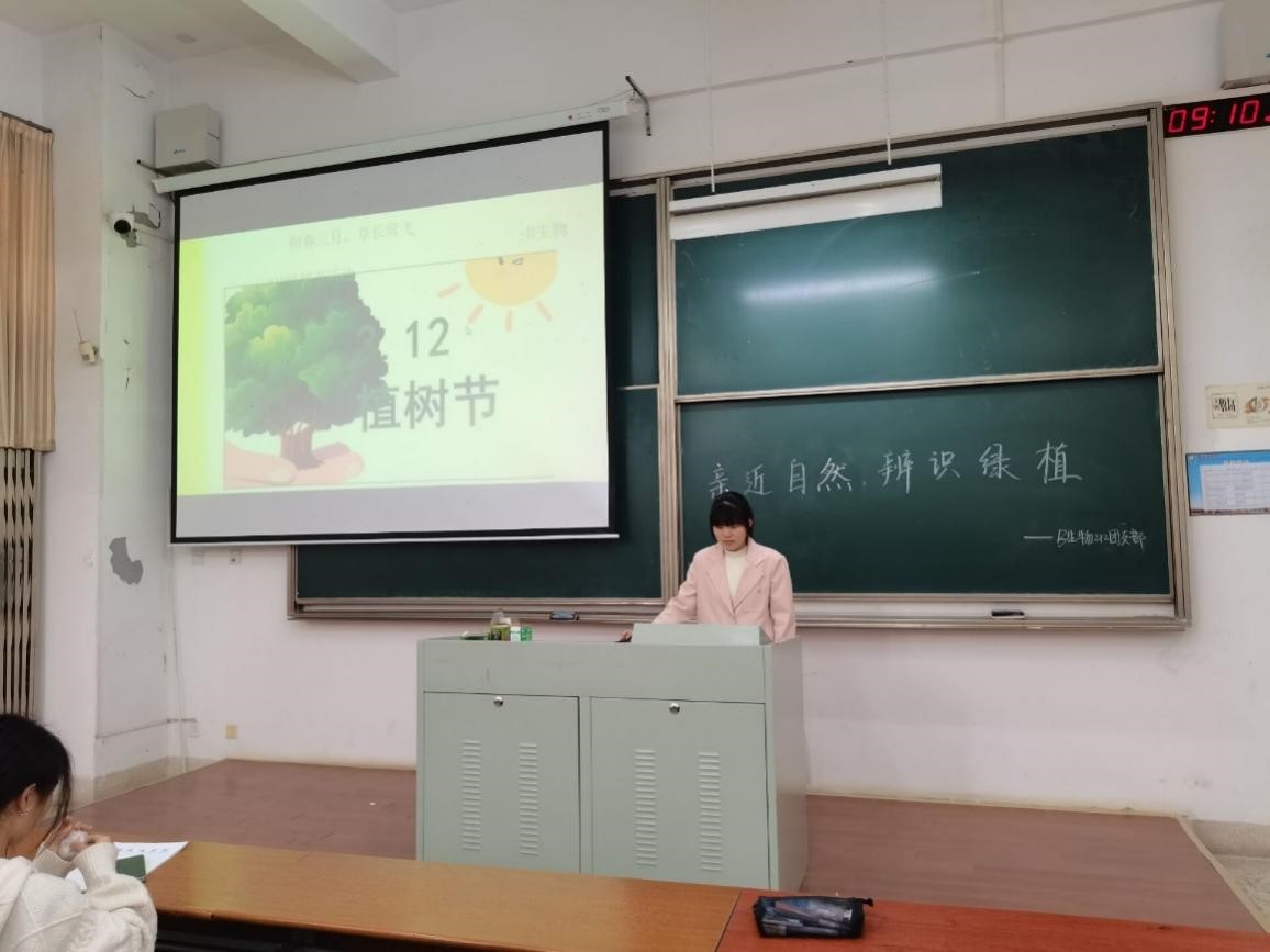上图为B生物212团支书开展植树节班会