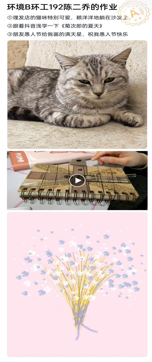 B环工192的陈二乔同学分享的理发店的猫主子看起来有些高冷呢,朋友手绘的满天星也不错呢。