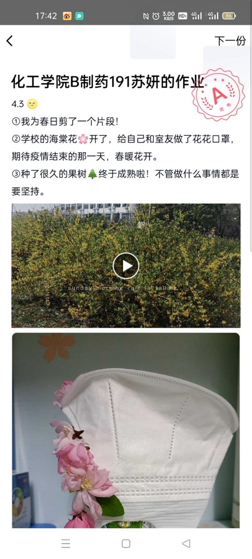 打卡活动给了同学们一个发现美好的机会,在紧张的防疫生活中,多了几分浪漫和轻松。打卡活动仍在火热进行,身边的美好越聚越多······