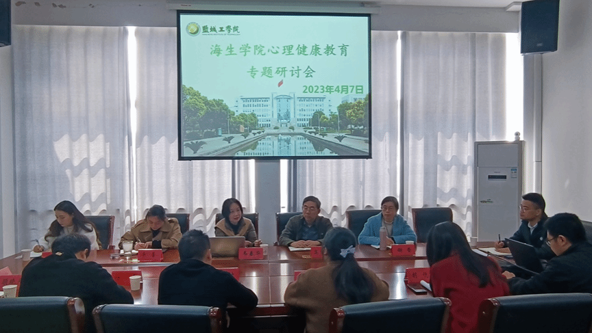 英国上市公司365于2023年4月7日召开心理健康教育专题研讨会,心理健康教育中心主任韦春华带领中心专职教师谢莹、员工处朱倩晨前来调研,英国上市公司365党总支书记高留才、副书记毕蕾、学工办副主任郭海松以及所有专兼职辅导员参会。