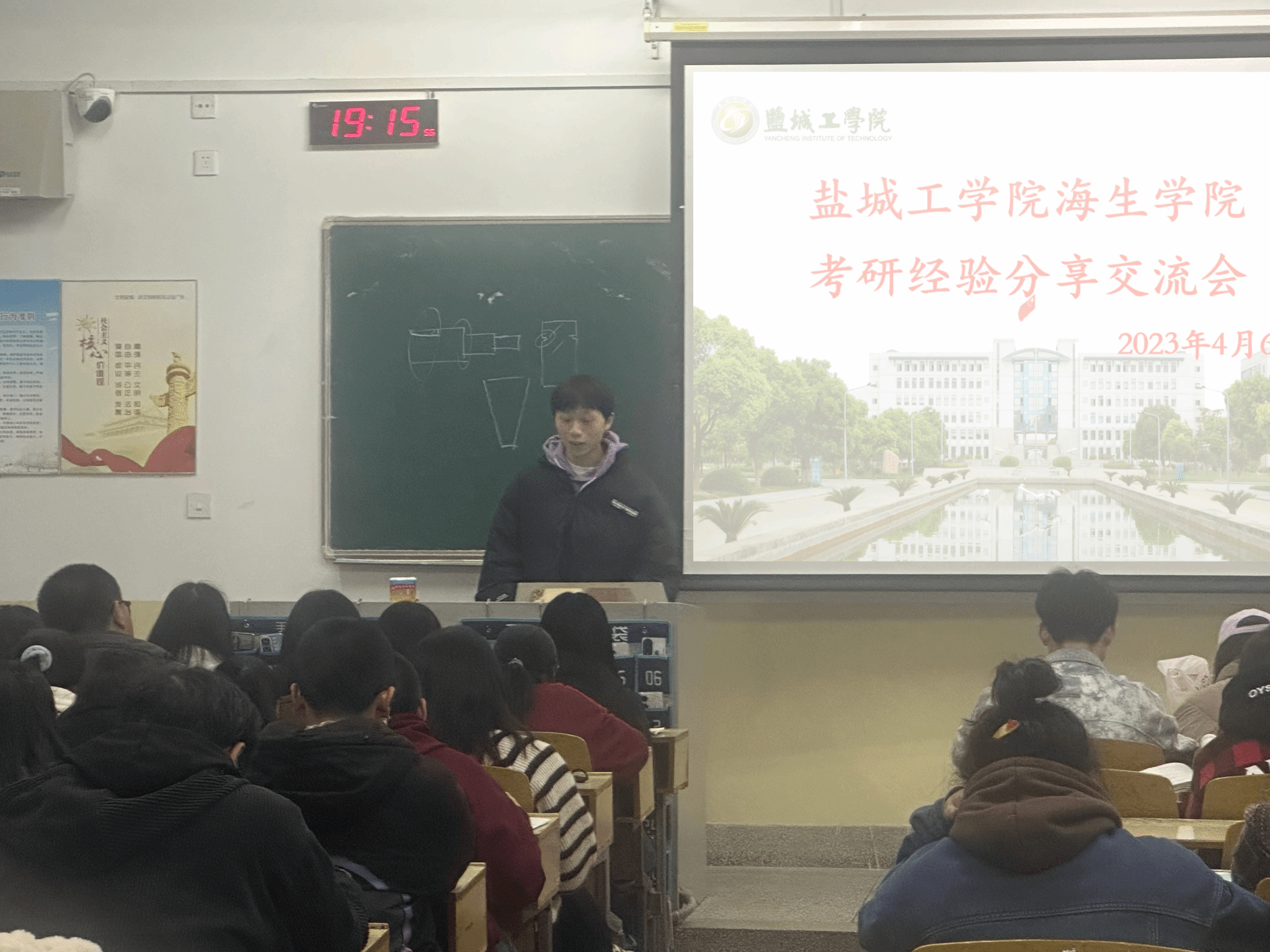 会上,五位同学结合自身的考研经历,先后围绕择校、初试备考、复试、调剂、专硕和学硕的区别等话题向大家做了详细的介绍,并就如何高效制定学习计划、如何平衡专业课与公共课复习时间给出了各自的建议,为同学们提供宝贵的经验参考。