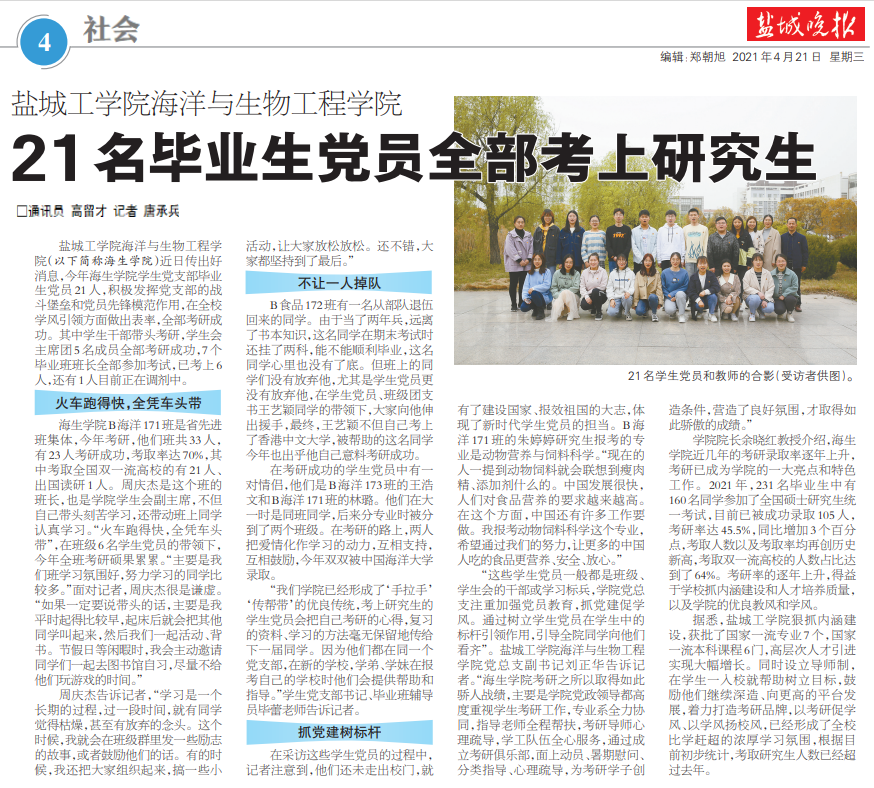 踏进盐工的菁菁校园,步入海生的靓丽行列,和你的导师团队一起,弘扬创造精神,用汗水浇灌青春,让奋斗成就梦想,努力培养自己翱翔天地的能力。